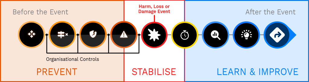 Known factors influence the conscious and unconscious choices all of us make, which can give rise to the unwanted situations and conditions that can lead to near misses, harm, damage, or loss. Organisational controls exist to disrupt that sequence, but no control is 100% effective, and all can be weakened or defeated in ways that can be understood and minimised.